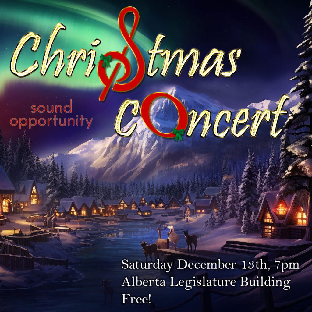 Saturday, December 21, 2024 (free public performance at City Hall) 4 pm City Hall (1 Sir Winston Churchill Square) Sound Opportunity performs seasonal favourites on main staircase inside